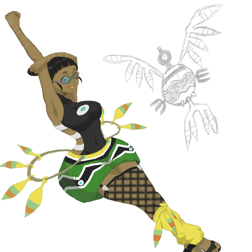本当は腰布(日よけになる)は白面→麻とか木綿系、緑面→絹系統のリバーシブル生地なイメージだったんだけど光沢つけるのめんどくなった(・・・)。わかりにくいですが一枚の大きな布です(多分)。