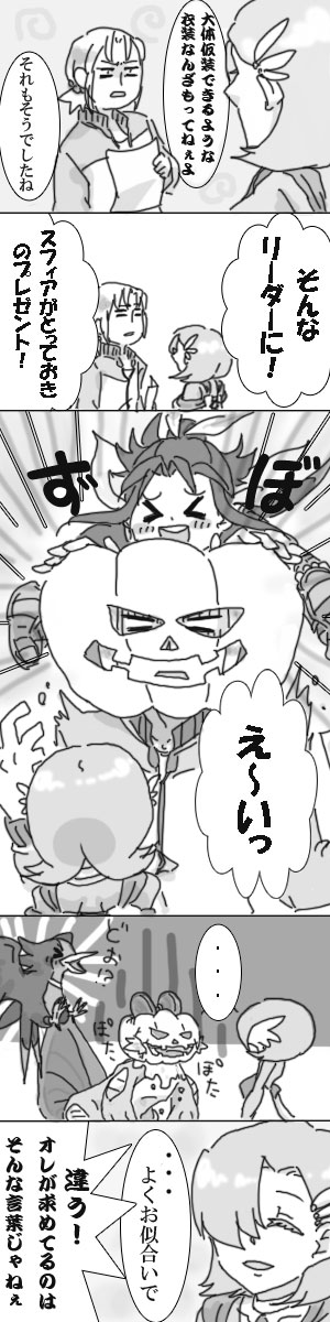 スーちゃんは落ち武者で行くことにしたらしい。・・・こんな装備で大丈夫か?《大丈夫だ、ry もってるかぼちゃは髑髏形にくりぬいてて手に入れたお菓子等の戦利品を入れるらしいよ! ミナトはフランケンシュタイン的なアレ。かぼちゃの中には配布用のナイトさん作のお菓子が入っている。ちびちゃんホイホイになればいいな・・・! カタログさんとこにも資料出したいけどページいじりは明日にしよう・・・ そういえば出し忘れてた絵。 スーちゃんの第一目的はおやつの確保。けっこう欲望に忠実な理由でした・・・ PR |