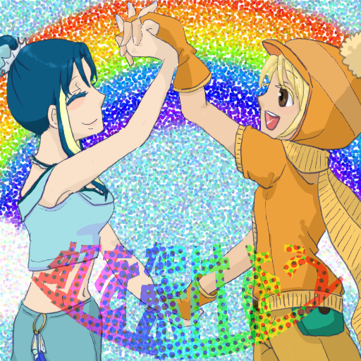 台風の後でよく虹が出ますね。虹のふもとを見てみたい風鈴です。 絵はFRのセイちゃんとクーちゃん(シャワーズ♀セイ・カイリュー♀クウカイ) 空と水なら虹が作れそうな気がして。 セイちゃんはおっとりのんびりぼけぼけの天然美人さん。チームのおねえさん的存在。 クーちゃんはしっかりてきぱきときどきまったりな器用娘。チーム内最年少だがまとめ役。 娘二人も仲良しです(チーム自体アットホームな雰囲気) |