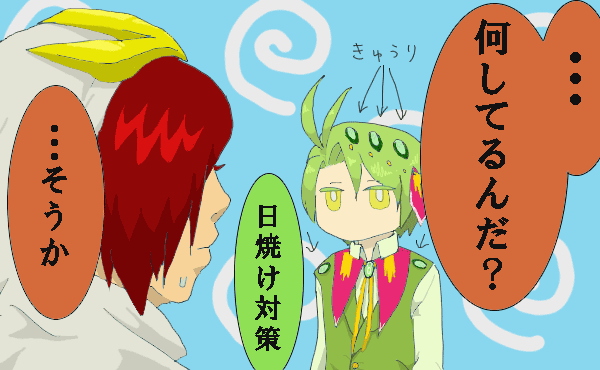 日焼けの炎症に効くらしい>きゅうり コロシアム1・カイチームの晴れコンビ テイカ(エンテイ)とリーフ(メガニウム♂) がんばりやでしっかり者のテイカさんはチームの保護者。パパもママも兼ねてます。 リーフくんは砂漠で色白スーツの電波野郎。アホ毛(触角)はたまに謎の電波を拾う。 カイチームにはあと雨コンビのヌオーとデンリュウ、エフィブラの双子がいます。 |