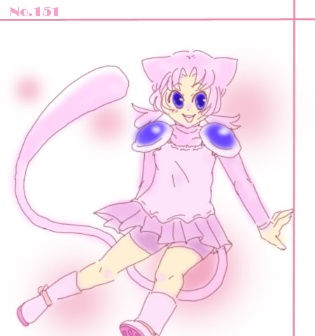 みう(ミュウ/無性別) スカートなのは趣味。「だってひらひらしててかわいいもん!」だそうな。 雰囲気はふわふわ、きまぐれに世界中を巡ってる。 バトルは好きじゃない、基本平和主義。なつっこい、愛嬌のある性格。 気難しく偏屈な全(★ミュウ)と唯一コミュニケーションがとれる子。 |