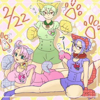 にゃんにゃんにゃん!いつだったか韓国のアイドルがこんな恰好してた! というのをうちの猫耳(っぽい)娘たちにさせてみた。 ツバキにゃんこ→ヤマネコっぽい。とてもワイルド。気性が荒く慣れにくい。でも仲間とみなしてくれると何か危険があった時に助けてくれる。害虫や害獣を駆除してくれる。セ●ムにうってつけ! ヒシアロにゃんこ→たれみみ短しっぽ。マンチカンとかスコティッシュとかそんな感じ。人懐っこく、とにかく甘え上手。癒し系。おつむはよろしくないが気分が落ち込んでる時やさみしい時にそばにいてくれる。 シラキミにゃんこ→スマートで気品がある。シルエットが美しいシャムっぽい。優雅で賢い。血統書ついてそう。なんか多分コンテストとかで賞取れそう。ブリーダー向け。 原形は手前からバクフーン、プクリン、ジャローダだよ! ヒシアロは進化前のが猫耳っぽいけど…。 |
